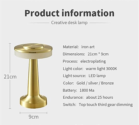 شارژی و قابل حمل:باتری داخلی این چراغ امکان استفاده از آن بدون نیاز به اتصال مستقیم به برق را فراهم می‌کند، که این ویژگی آن را برای سفر، کمپینگ یا محیط‌های بدون برق ایده‌آل می‌سازد.