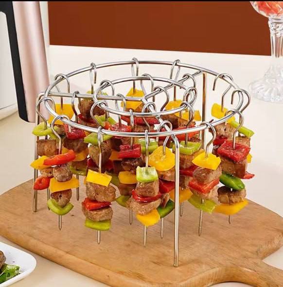 پایه سیخ این ست با طراحی حرفه‌ای خود، فاصله مناسب بین سیخ‌ها را تضمین می‌کند تا حداکثر جریان هوا در طول پخت برقرار شود و غذاها به‌طور یکنواخت آماده شوند. این مجموعه، ظرفیت کافی برای پخت چندین غذای سیخی به‌صورت همزمان را دارد و فرآیند آماده‌سازی وعده‌های غذایی برای خانواده یا گروه‌ها را سریع‌تر و سازمان‌یافته‌تر می‌کند.